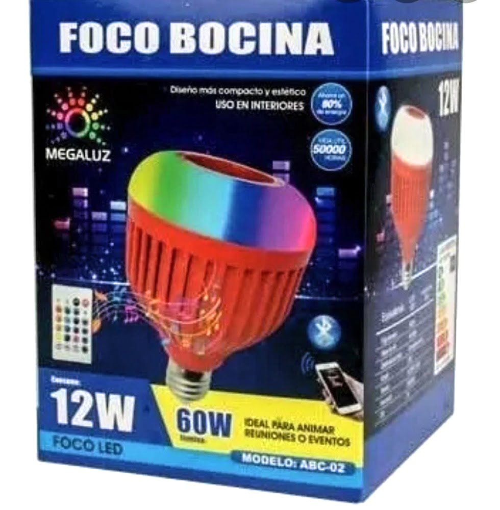 foco led con bocina integrada e26 rgb incluye control para manipular volumen y colores .